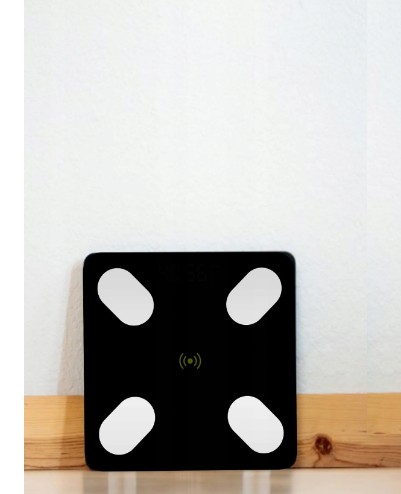 Inteligentna waga z wyświetlaczem, który pokazuje nam masę ciała, ale także inne wskaźniki jak m.in. zawartość tłuszczu , wody czy tkanki mięśniowej w organizmie.