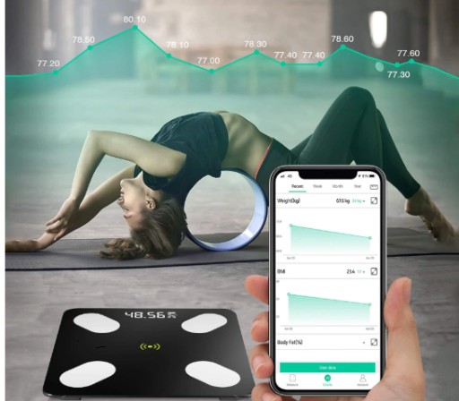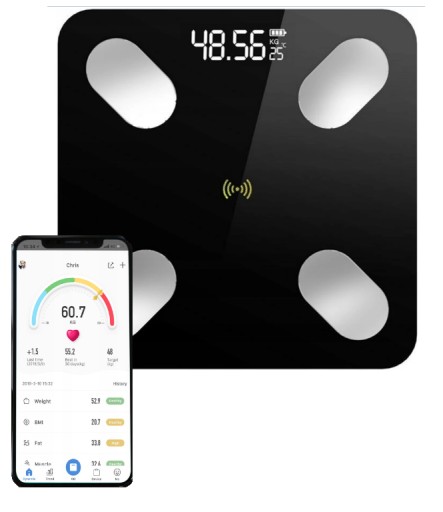 SMART WAGA ŁAZIENKOWA Z BLUETOOTHEM , APLIKACJĄ NA ANDROIDA I IOS ANALITYCZNA
