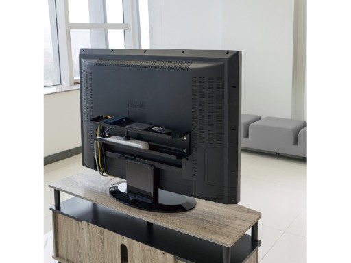 Dwa poziomy o długości 57,4 cm zapewniają wystarczająco dużo miejsca na przechowywanie niewielkich urządzeń RTV i akcesoriów. Dodatkowo górna półka wyposażona jest w matę antypoślizgową. Maksymalne obciążenie półki wynosi 2 kg. Półka pasuje do telewizorów ze standardem VESA od 75 do 500 mm. Montaż ścienny lub w otworach montażowych z tyłu telewizora.