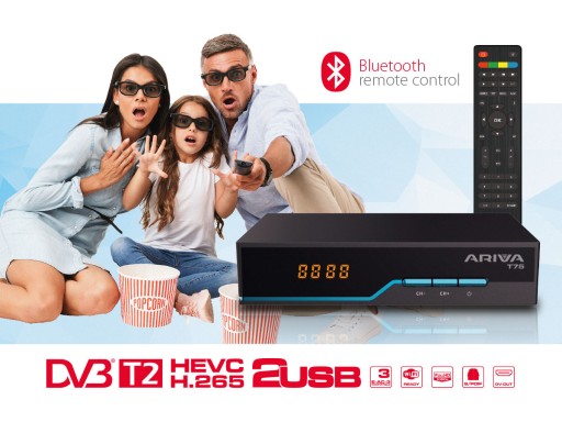 Ferguson Ariva T75 to uniwersalny odbiornik telewizji naziemnej nadawanej w standardzie DVB-T/T2. Odbiornik obsługuje najnowsze standardy kodowania obrazu H.265 HEVC i dźwięku Dolby Digital zgodne z najnowszymi europejskimi standardami nadawania telewizji naziemnej. Niewielka, estetyczna bryła odbiornika doskonale wpisze się w każdą przestrzeń wokół telewizora.