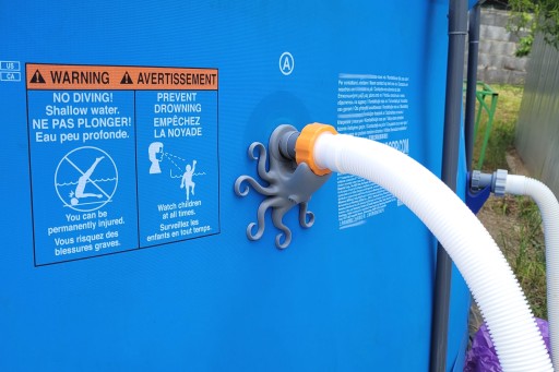 Montaż jest bardzo łatwy i trwa tylko dwie minuty. Zdejmujemy sitko od wewnętrznej strony basenu i zatykamy otwór korkiem lub szmatką. Odkręcamy plastikowy zacisk i odłączamy rurę od basenu. Nakładamy podpórkę płaską stroną do basenu, a następnie z powrotem nakładamy rurę i dokręcamy plastikowy zacisk (Im głębiej nasadzimy wąż, tym lepiej będzie ustabilizowany). Odtykamy otwór i z powrotem przykręcamy sitko. Gotowe! Od teraz nie musisz się martwić o niestabilne węże, które mogą uszkodzić twój basen.