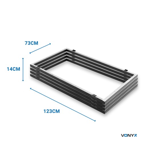 w którego skład wchodzą cztery, prostokątne elementy jest idealnym rozwiązaniem dla wielu artystów. Fasada pozwoli ukryć cały ekwipunek i jednocześnie stworzyć elegancki wygląd. Świetny dla każdego, kto szuka szybkiego i eleganckiego set-upu aby poprawić swoją oprawę wizualną. Lekka rama stalowa ma czarne wykończenie, które wygląda niesamowicie w połączeniu z materiałem Lycra. Panele wyposażone są w elastyczne tkaniny, które bardzo łatwo utrzymać w czystości.