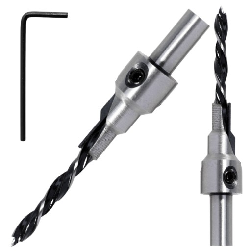 Wiertło do wiercenia otworów pod konfirmaty w drewnie i materiałach drewnopochodnych.