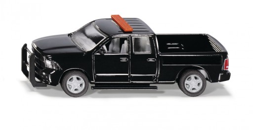 RAM! Znany na całym świecie symbol masywnych i silnych pickupów z 8-cylindrowym sercem. Model w skali 1:50 pokazuje prawdziwą wielkość i funkcjonalność tego pickupa. Otwierana klapa silnika, drzwi i klapa tylna. Najnowsza innowacja SIKU kryje się w kołach, które po raz pierwszy można zdjąć, dzięki czemu dziecko może bawić się w naprawę bądź awarię pojazdu. Wersję policyjną zdobi typowe obrotowe światło ostrzegawcze i charakterystyczne nadruki.