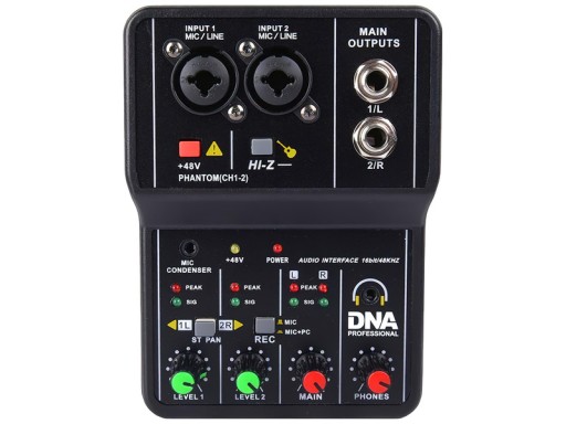 DNA MIX 2 to kompaktowy analogowo-cyfrowy 2-kanałowy mikser dźwięku z wbudowanym interfejsem audio USB dla łatwej współpracy z komputerem bądź laptopem i różnego typu oprogramowaniem muzycznym, który możemy wykorzystać w różnego typu instalacjach nagłośnieniowych. Idealnie sprawdza się w domowym studiu i homerecordingu, a także jako podręczny mikser dla wokalistów, gitarzystów, klawiszowców, artystów ulicznych i DJ-ów.