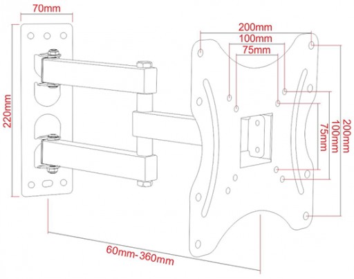 КРЕПЛЕНИЕ ДЛЯ ТВ 19-42 35 КГ AR-60A ART регулируемое вертикальный горизонтальный