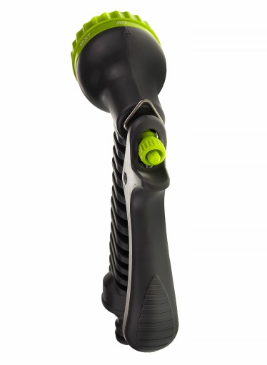 Wysokiej jakości pistolet zraszający wielofunkcyjny - 7 rodzajów strumienia z regulacją przepływu. Dobrze wyważony, idealnie trzyma się w dłoni. Posiada tryb pracy ciągłej.