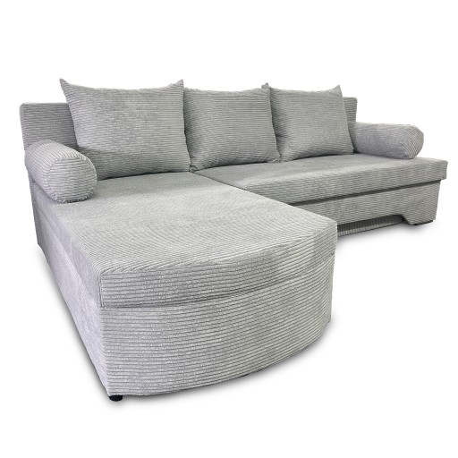 Narożnik z funkcją spania i pojemnikiem na pościel. Kompaktowy model w nowoczesnej tkaninie