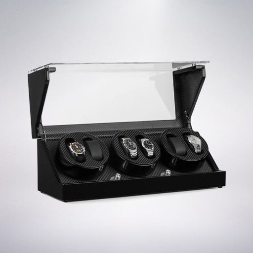 - Dekoracyjny rotomat na 6 zegarków w optyce karbonowej