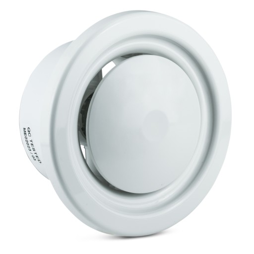 Wbudowany w anemostat ruchomy talerzyk precyzyjnie wyznacza kierunek nawiewu powietrza. Służy także estetycznemu zakończeniu systemu wentylacyjnego.