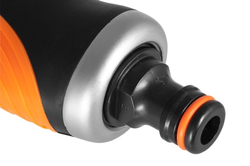 Pistolet został wyposażony w specjalny adapter na szybkozłączkę, dzięki czemu jego podłączenie do węża ogrodowego jest szybkie i bezproblemowe.