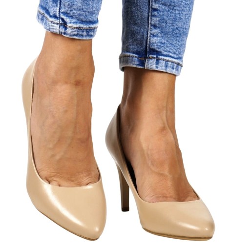 WYGODNE SZPILKI CZÓŁENKA COFFE BEŻOWE - NOWY MODEL