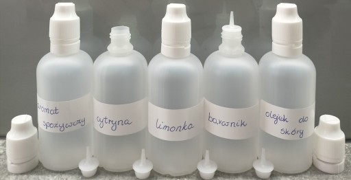 BUTELKA BUTELKI PLASTIKOWE 60ML 100SZT + ETYKIETY