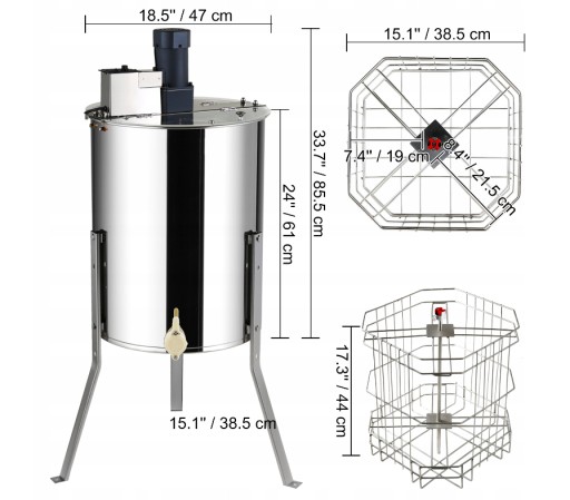 DUŻA POJEMNOŚĆ - Elektryczna miodarka może pomieścić jednocześnie 4 głębokie ramki i 4 średnie lub płytkie ramki.