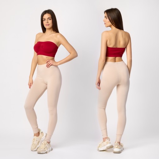 - Damski biustonosz typu bandeau; bez ramiączek; nie zwęża się, optymalnie podtrzymuje klatkę piersiową