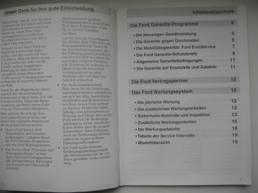 Zawartość: 11 stron (serwisowa) + 19 stron (gwarancyjna) + 56 stron (ASO FORD)