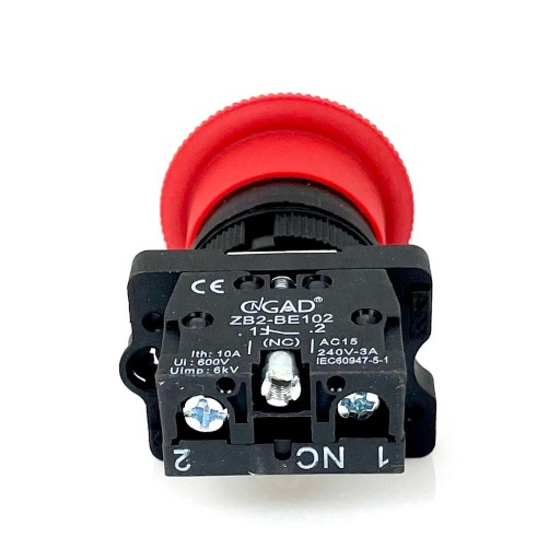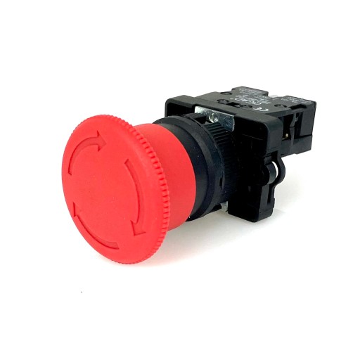 PRZYCISK, WYŁĄCZNIK BEZPIECZEŃSTWA, GRZYBEK 40mm POD OTWÓR MONTAŻOWY fi 22mm. WYPOSAŻONY W STYK ROZWIERNY NC. ODRYGLOWYWANY PRZEZ OBRÓT.