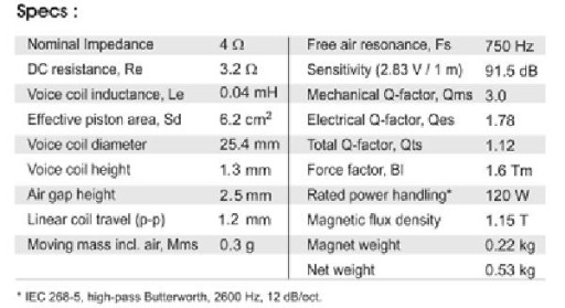 SB Acoustics SB26STAC-C000-4 to głośnik wysokotonowy z tekstylną kopułką o impedancji 4 omów, wykorzystujący 1-calową cewkę wraz z miedzianym biegunem. Aluminiowa płyta czołowa o grubości 100 mm poprawia jakość wykonania i wygląd.