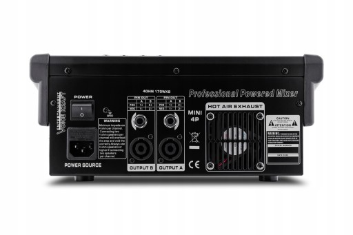 - Wyjścia audio: 2x XLR (zbalansowane); wyjście mix Jack 6,3 mm (mono); gniazdo zasilacza (2,5/5,5)