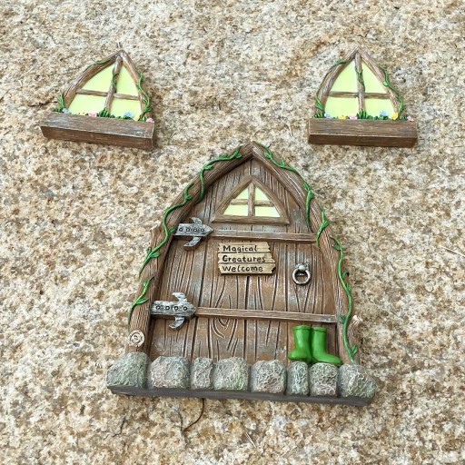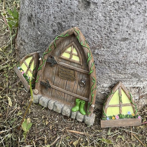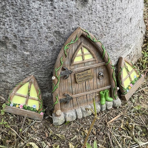 Miniaturowe okna drzwi bajki ogrodowe gnomy, wykonane z żywicy premium, zawiera 1 drzwi, 2 okna