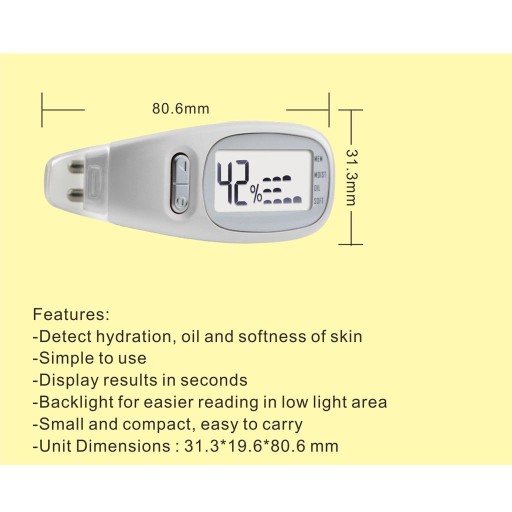 Pomaga monitorować zawartość wilgoci w skórze, zawartość oleju, miękkość, aby zachować młody i zdrowy wygląd skóry.