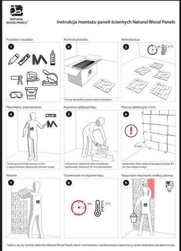 Montaż paneli Natural Wood Panels jest bardzo prosty, a stosując dedykowany klej, zamontowanie 1m2 paneli zajmie nam nie wiecej jak 10 minut, bez pomocy wykwalifikowanego montażysty.