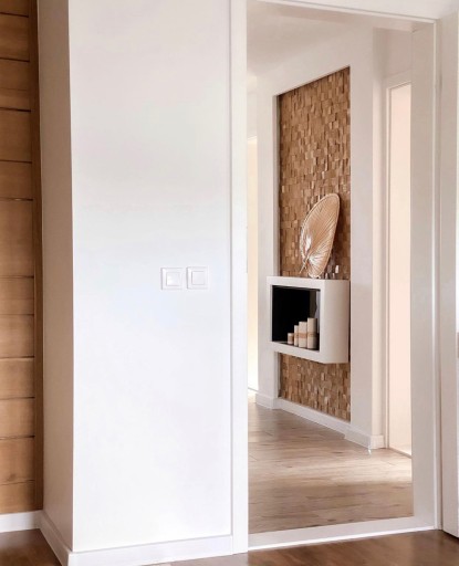 Doskonałym uzupełnieniem niemal każdego salonu mogą okazać się ściany wykończone naturalnym drewnem.Ten surowiec, wykorzystywany najczęściej w przypadku podłóg czy mebli, w tak niecodziennej oprawie stanie się jednym z najbardziej charakterystycznych elementów wnętrza.Ich elegancja i efektowność, a jednocześnie naturalność i surowość sprawiają, że doskonale odnajdą się one w przypadku różnych stylów,takich jak nowoczesny, eko, skandynawski czy minimalistyczny. Takie rozwiązania często możemy też spotkać w mieszkaniach urządzonych w nurcie loftu, gdzie połączenie betonu,szkła i drewna odgrywa znaczącą rolę, a także rustykalnym, odznaczającym się przewagą tego naturalnego surowca. Decydując się na zakup paneli ściennych od Natural Wood Panels , masz pewność tego, że produkt powstał tylko i wyłącznie z naturlnych surowców. Proces wytwarzania mozaiki ściennej w naszej pracowni, jest wieloetapowy, każdy element "przechodzi" przez ludzkie dłonie, gdzie jest dokładnie obrabiany i klasyfikowany według jakości, koloru i wymiaru. Drewniana mozaika na ścianę od Natural Wood Panels to doskonały element designu na lata. Drewno było, jest i będzie nieprzemijalnym elementem wystroju naszych wnętrz.