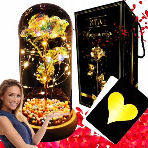 WIECZNA RÓŻA W SZKLE LED PREZENT WALENTYNKI DZIEŃ BABCI DZIEŃ KOBIET ŚWIĘTO