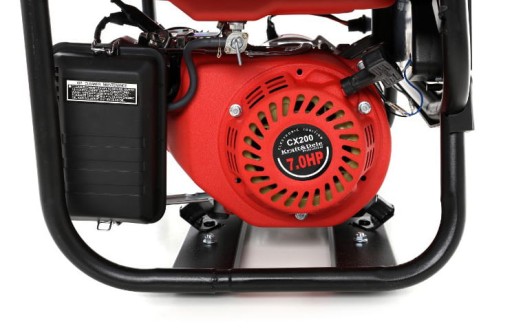 - Przenośny agregat prądotwórczy jednofazowy, przeznaczony do generowania prądu zmiennego 230V za pomocą silnika spalinowego japońskiej konstrukcji OHV 4-suwowego mocy 7KM oraz prądnicy 3000W.