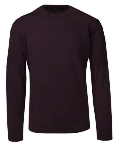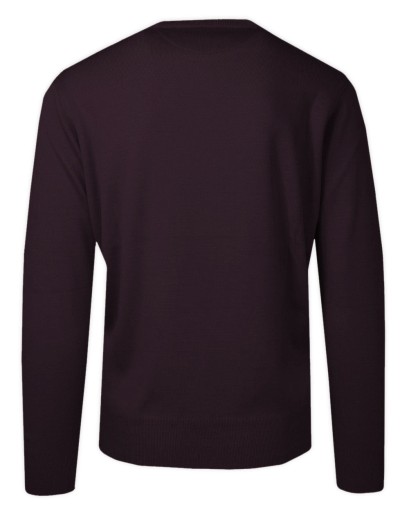 Sweter Męski Śliwkowy Wełniany, z Okrągłym Dekoltem, U-neck -HOVARD