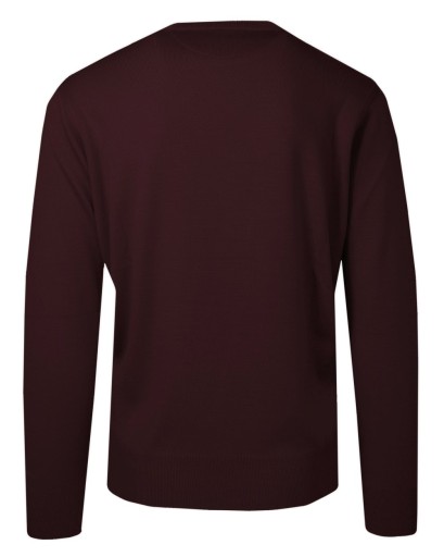 Sweter Męski Bordowy Wełniany, z Okrągłym Dekoltem, U-neck -HOVARD