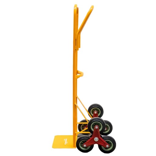 Potrójne koła sprawiają, że wózek może pracować na schodach zapewniając łatwe wciąganie i zwożenie towaru, jak i na płaskim terenie.