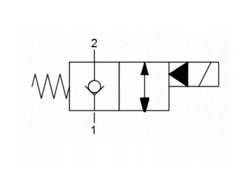 - przepływ z 1 do 2 jest zablokowany ale możliwy do przepchnięcia gdy ciśnienie napierające przekroczy siłę elektromagnesu na cewce sterującej.