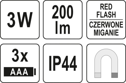 - 3 tryby pracy: COB tryb wysoki / COB tryb niski / Światło czerwone, migające (ostrzegawcze)