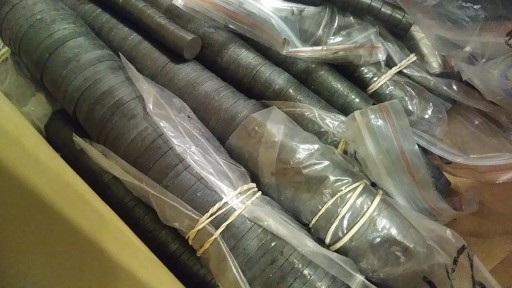 Foto przedstawia kilka/kilkanaście sztuk magnesów połączonych razem.