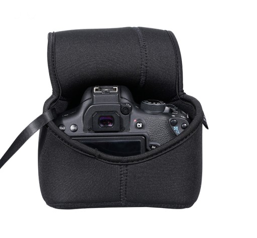 Wysokiej jakości futerał firmy JJC wykonany z materiału neoprene, doskonale chroni aparat przed wszelkiego rodzaju uszkodzeniami mechanicznymi oraz zabrudzeniami. Materiał, z którego został wykonany futerał jest elastyczny, co sprawia, że idealnie dopasowuje się do kształtów aparatu.