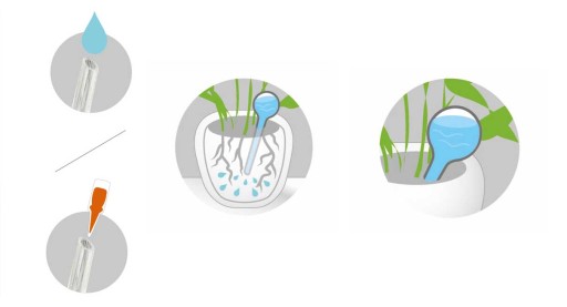 - Użytkowanie : po napełnieniu wodą lub odżywką, nawadniacz należy wbić w podłoże, a roślina sama będzie pobierać odpowiednią ilość płynu. Zapewnia to optymalne dawkowanie - dzięki temu już nigdy nie przesuszysz ani nie przelejesz swojej rośliny.