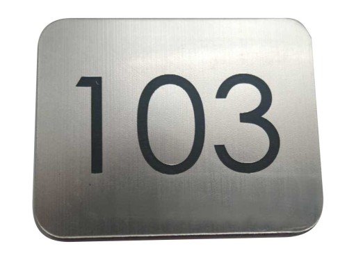 Numerek wykonujemy techniką grawerowania laserowego na wysokiej jakości laminacie grawerskim o grubości 1,6 mm