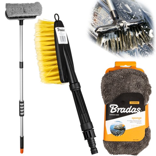Profesjonalna szczotka 2-funkcyjna marki Bradas została wykonana z najwyższej jakości materiałów. Szczotka służy do mycia samochodów, pojazdów oraz większych powierzchni płaskich. Starannie wyprofilowany kształt szczotki pozwala na dotarcie do najmniejszych zakamarków, skutecznie usuwając zabrudzenia.