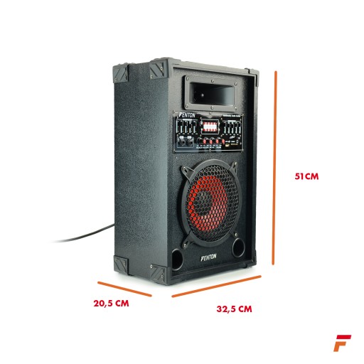 Fenton SPA-800PA to zestaw aktywny dwóch kolumn z wbudowanym wzmacniaczem. Podłączenie jest bardzo proste, a zestaw jest gotowy do użycia w kilka minut po wyjęciu z opakowania. Kolumny są wyposażone w 8-calowy głośnik niskotonowy i dysponują łączną mocą nie mniejszą niż 600W.