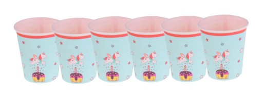 Papierowe kubeczki urodzinowe z zestawu Jednorożec - 6 sztuk