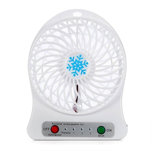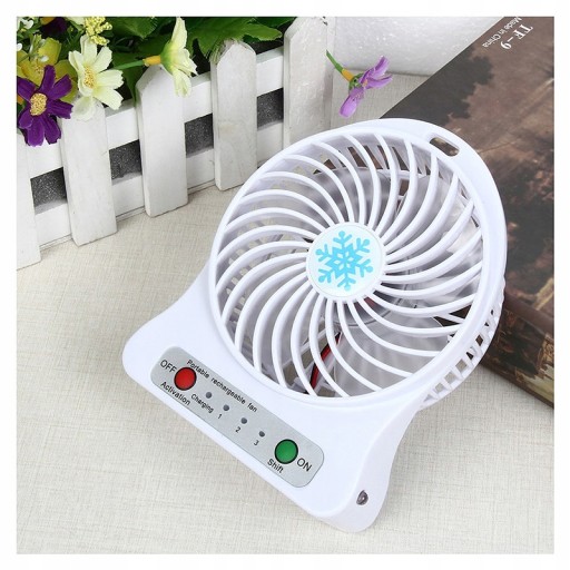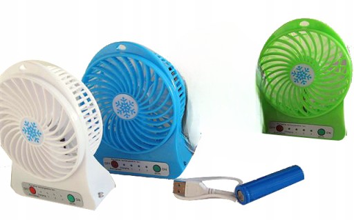 Mocny przenośny wiatraczek zasilany akumulatorkiem 800 mAh z 3 poziomami szybkości.