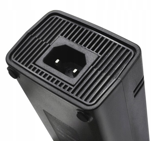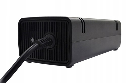 Zasilacz sieciowy do konsoli Microsoft XBOX 360 model SLIM. Urządzenie umożliwia podłączenie konsoli gier XBOX 360 do sieci elektrycznej 230V. Zasilacz jest zamiennikiem, doskonale jednak pasuje do wszystkich modeli konsoli XBOX 360 w odświeżonej wersji SLIM. Wyposażony został w dodatkowe stopki z pianki, które zapobiegają rysowaniu podłoża. Urządzenie posiada również diodę sygnalizacyjną. Kabel zasilacza jest dobrze izolowany i filtrowany co dodatkowo zwiększa bezpieczeństwo.