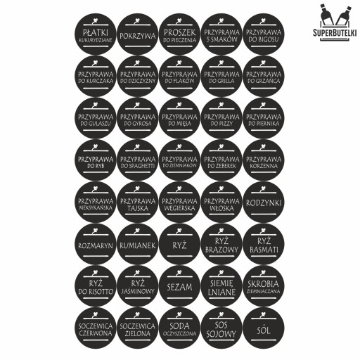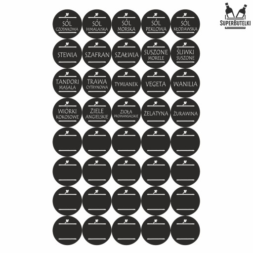 Kupując na tej aukcji otrzymujesz 200 sztuk etykiet samoprzylepnych z nazwami przypraw widocznymi na zdjęciach.