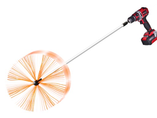 ◾️ Najlepsze rezultaty czyszczenia uzyskasz, kiedy średnica obracającej się szczotki będzie większa o ok. 1-2 cm od średnicy przewodu kominowego.
