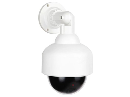 Atrapa kamery to wysokiej jakości imitacja prawdziwej kamery monitoringu CCTV. Migająca czerwona dioda LED sprawia wrażenie monitoringu całodobowego.