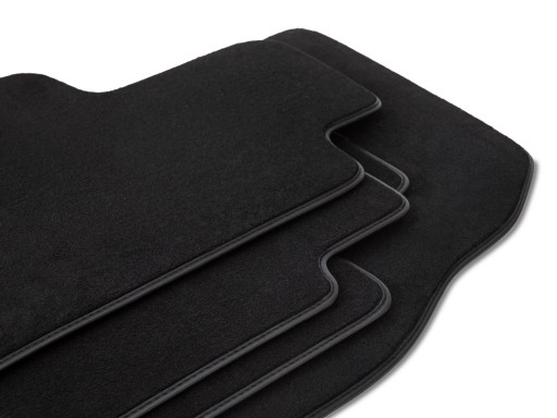 W dywanikach zostało wykorzystane połączenie wysokiej jakości czarnej solidnej wykładziny z obszyciem matowej czarnej ekoskóry co charakterystycznie podkreśla jakość oferowanych dywaników oraz łączy je w spójną całość