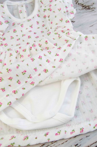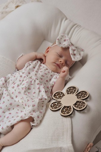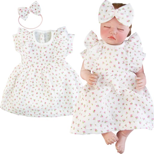 Nasz bodosukienka muślinowa z opaską to elegancka ale jednocześnie wygodna stylizacja dla małej dziewczynki. Będzie komfortowa nawet dla jeszcze leżących niemowląt.