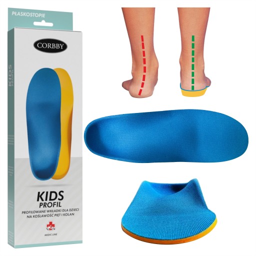 CORBBY KIDS PROFIL ORTOPEDYCZNE PROFILOWANE WKŁADKI DO BUTÓW DLA DZIECI NA KOŚLAWOŚĆ PIĘT I KOLAN ROZMIAR 24/25!