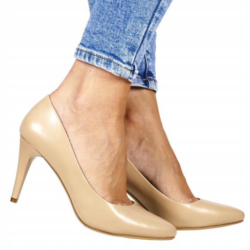 WYGODNE SZPILKI CZÓŁENKA COFFE BEŻOWE - NOWY MODEL